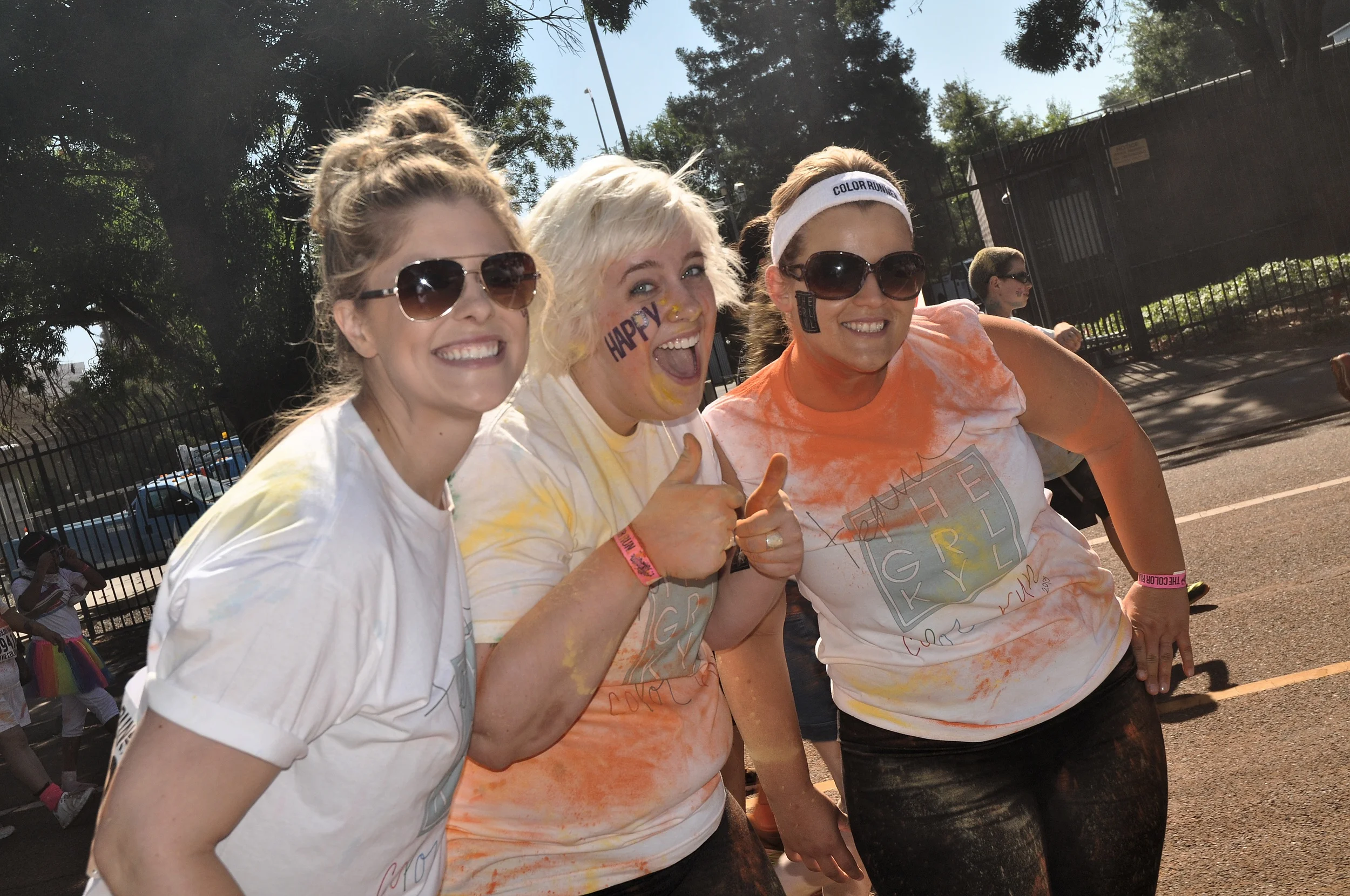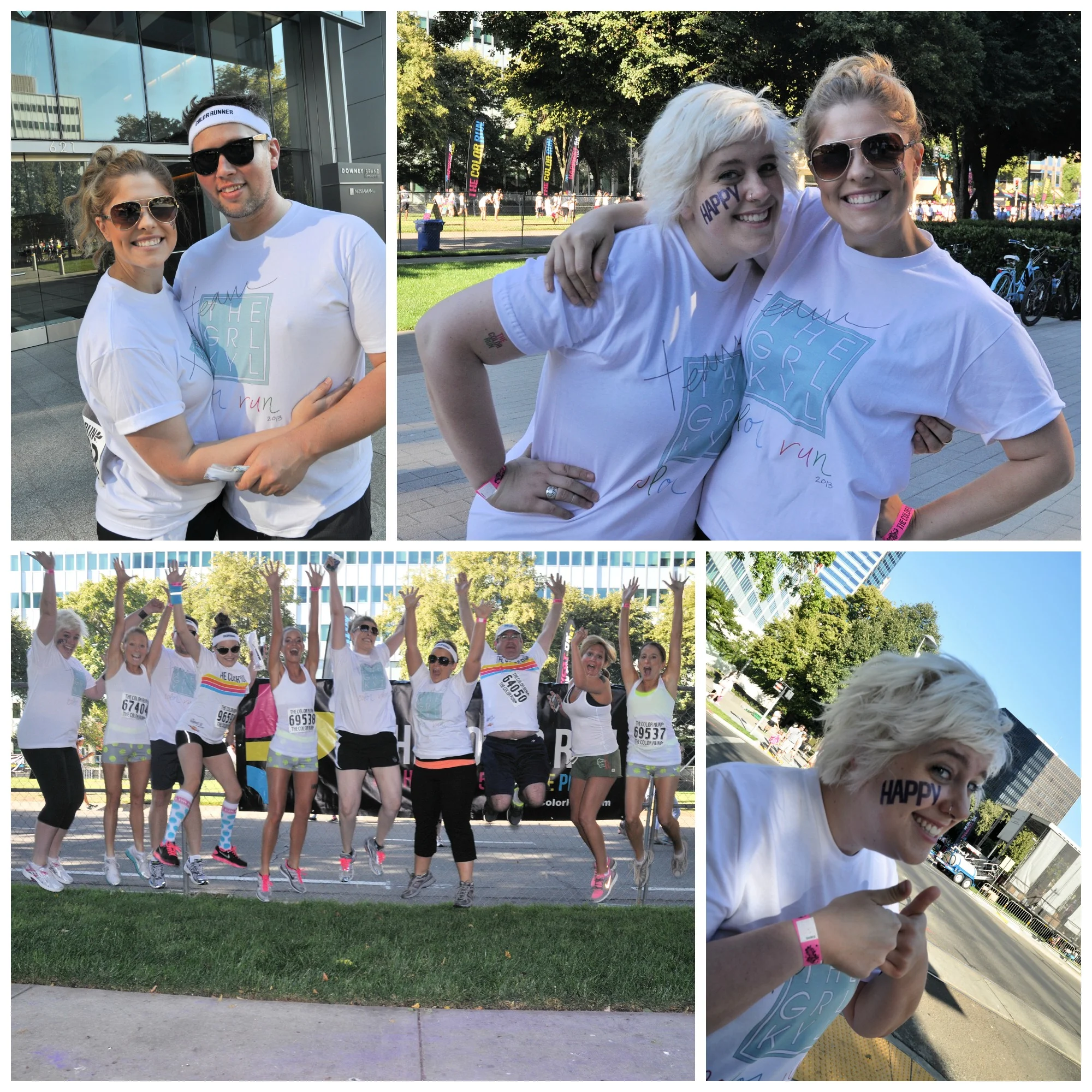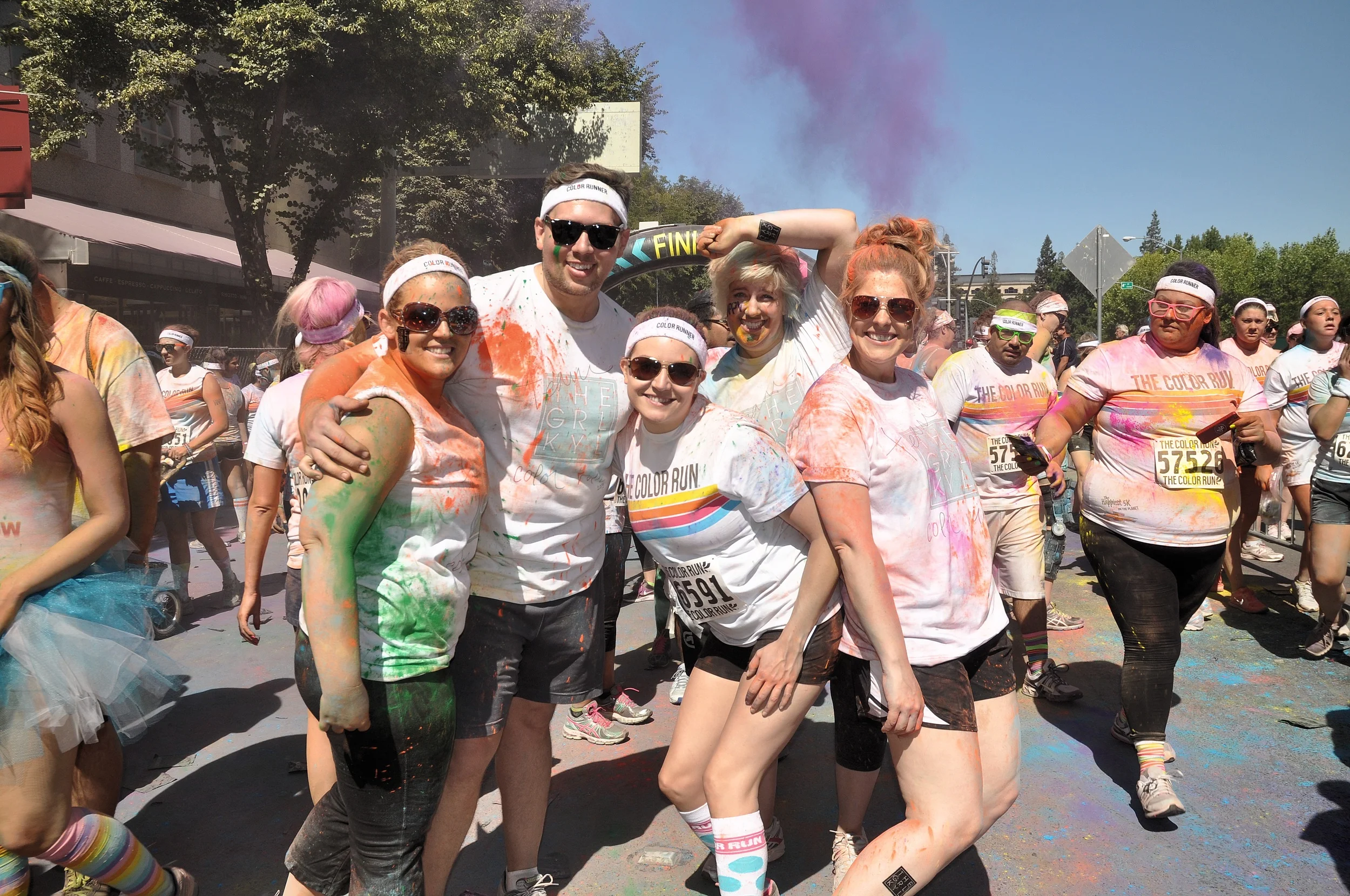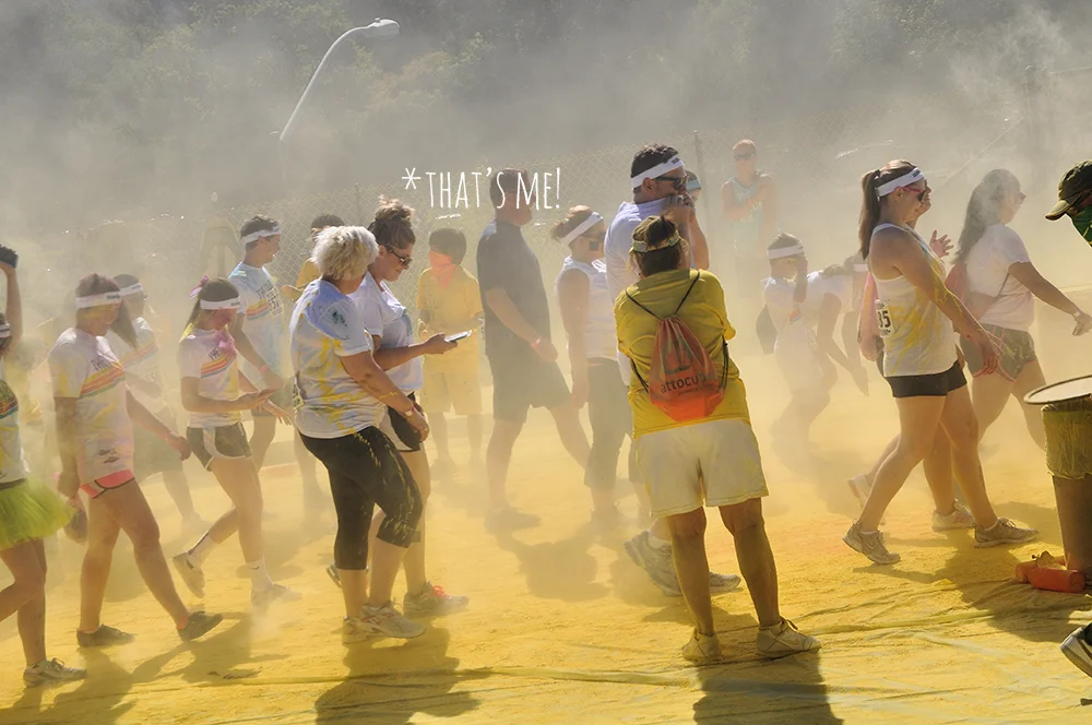 That clean white shirt didn't last though, as soon as we rounded the corner to the finish line. People (myself included) were throwing their packets of color in the air, in my hair and just about everywhere else. It. Was. AWESOME!