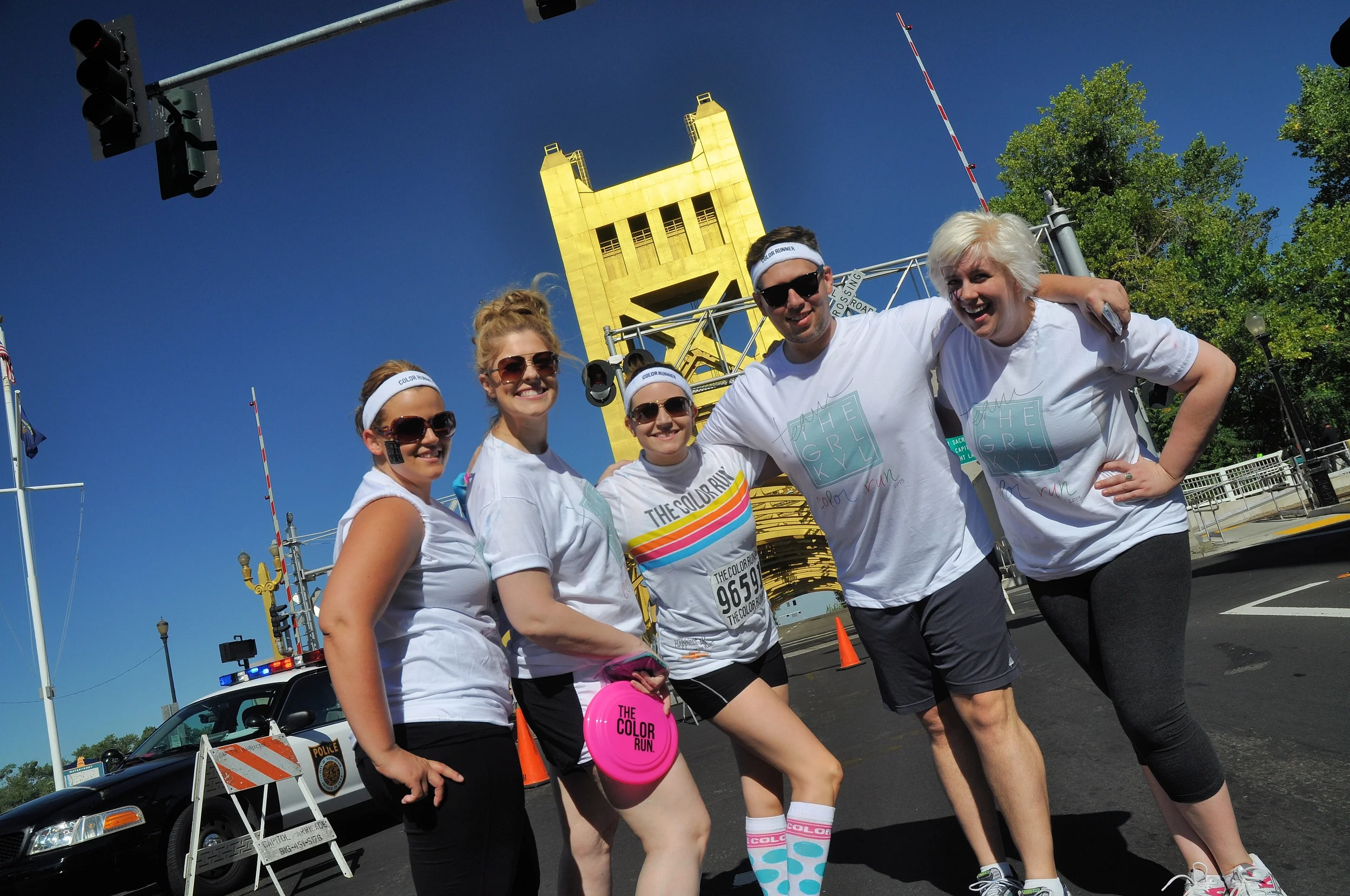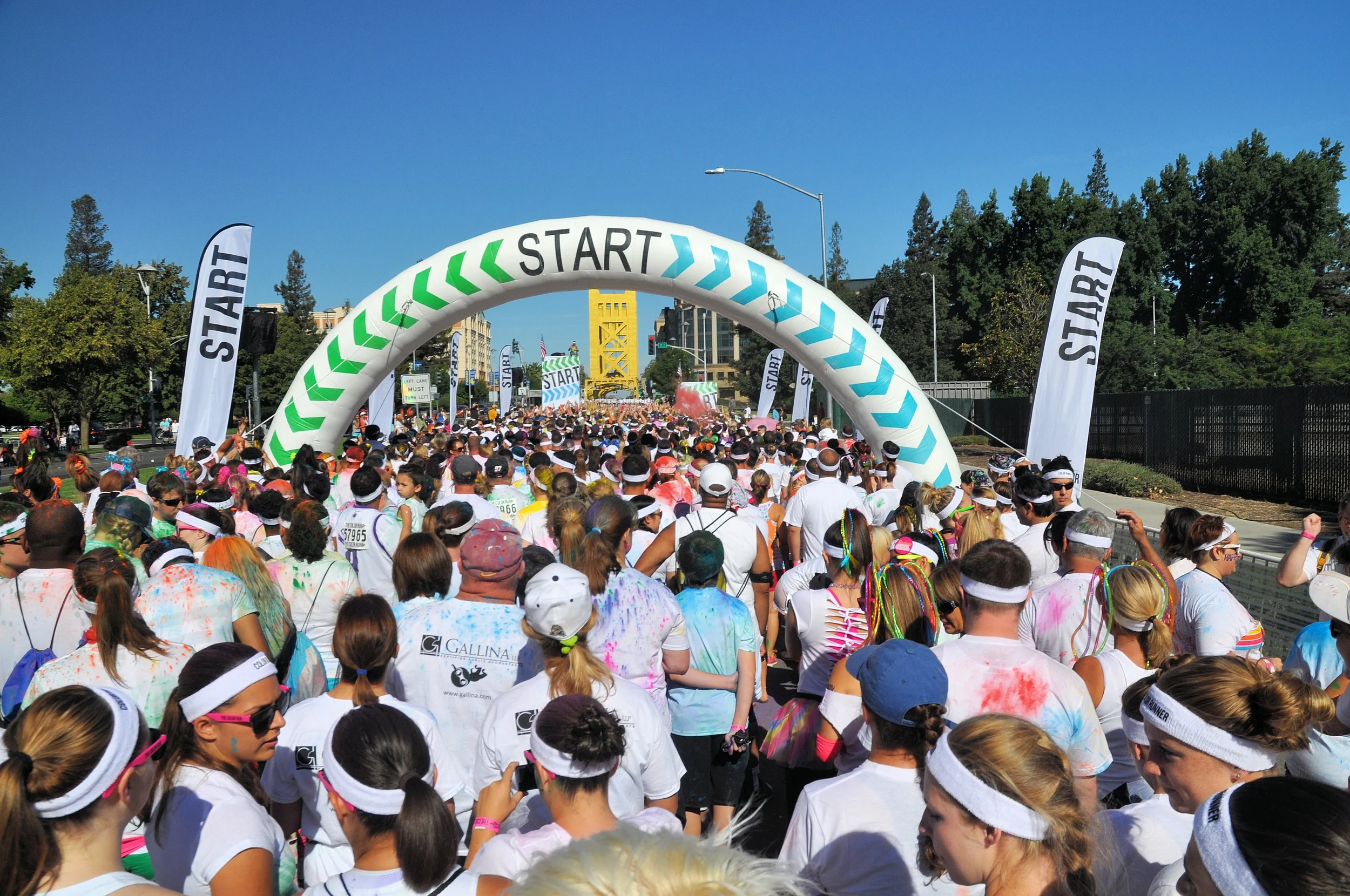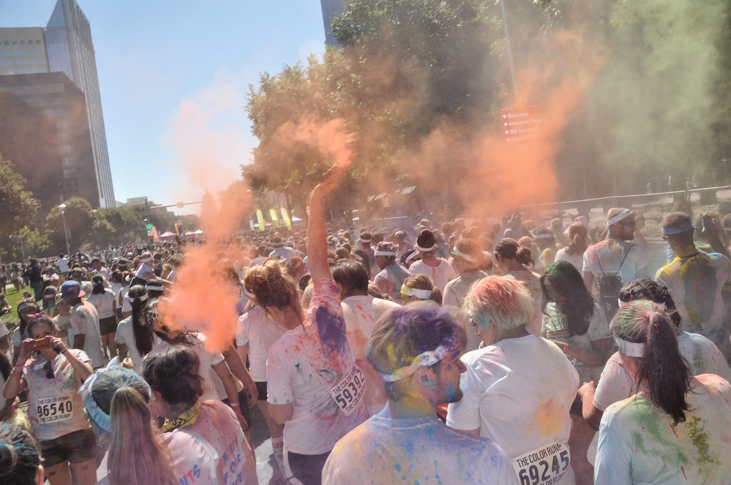 That clean white shirt didn't last though, as soon as we rounded the corner to the finish line. People (myself included) were throwing their packets of color in the air, in my hair and just about everywhere else. It. Was. AWESOME!